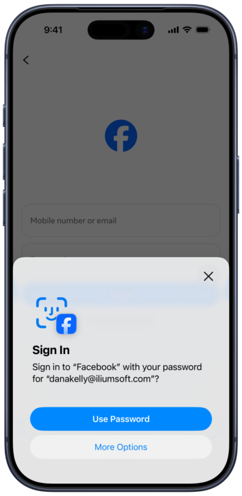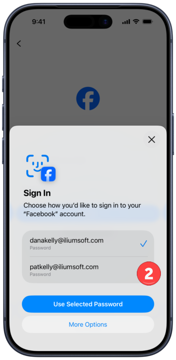 - Tap on the username/email field as in the Single credential match case above
