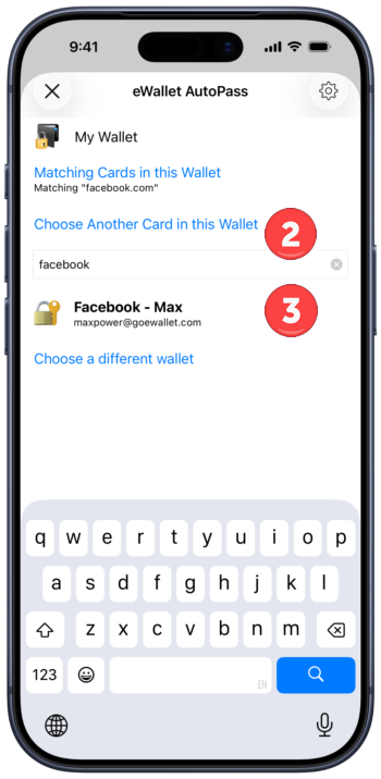 - You can then use the eWallet AutoPass screen to choose a different card (using search if you like) or even choose a different wallet
